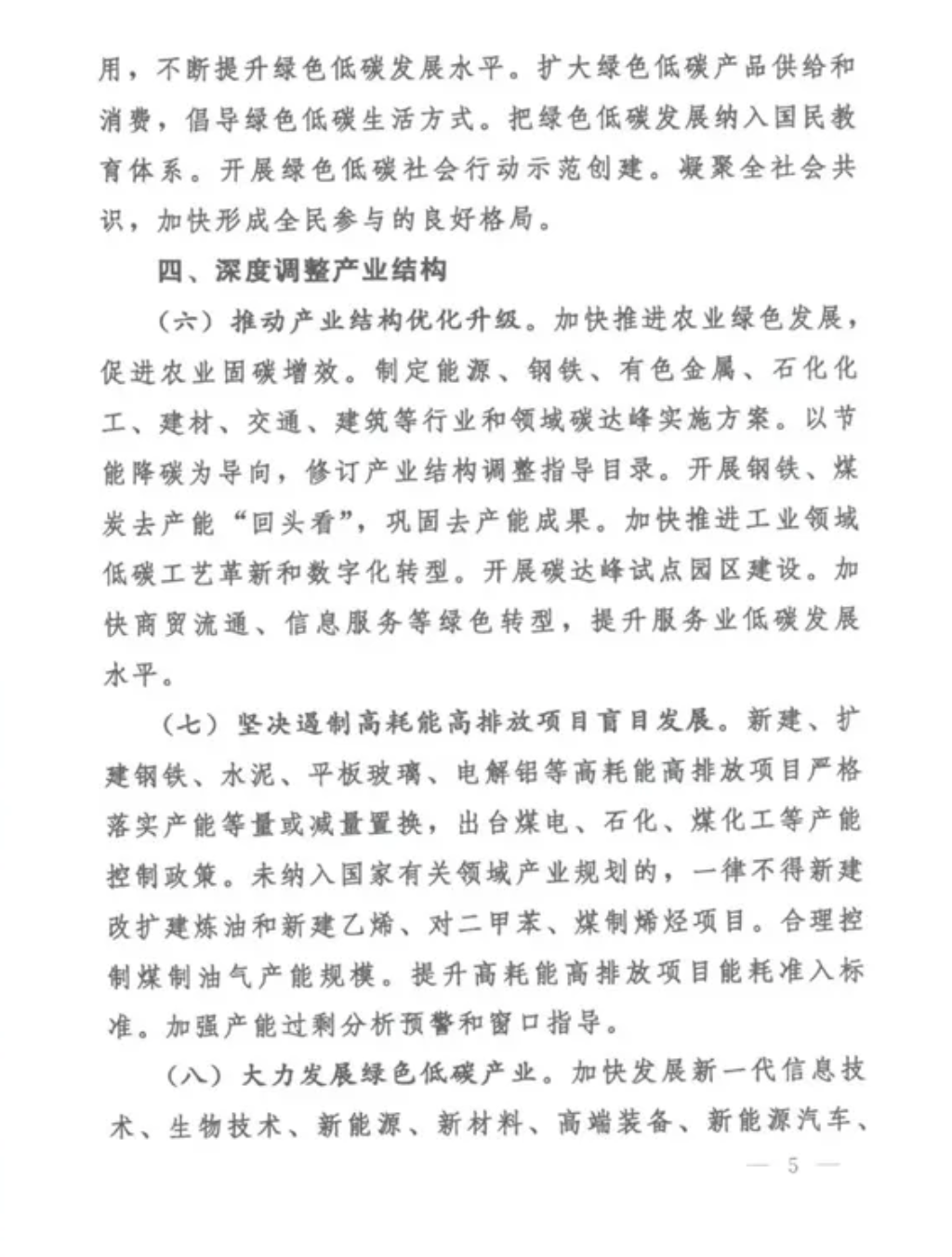 (六)推動(dòng)產(chǎn)業(yè)結(jié)構(gòu)優(yōu)化升級(jí),制定能源、鋼鐵、有色金屬、石化化工、建材、交通、建筑等行業(yè)和領(lǐng)域碳達(dá)峰實(shí)施方案。加快推進(jìn)工業(yè)領(lǐng)域低碳工業(yè)革新和數(shù)字化轉(zhuǎn)型。開展碳達(dá)峰試點(diǎn)園區(qū)建設(shè)。